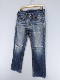 THIS IS USED CLOTHING PLEASE DO NOT EXPECTED IT TO BE LIKE NEW OR DO NOT EXPECT IN PRISTINE CONDITION PLEASE READ THE DESCRIPTION IN DETAIL BEFORE MAKE ANY PURCHASE!! ALL SALES ARE FINALS!! 💥RARE💥Vintage True Religion Distressed Jeans CONDITION: Distressed,Stain MANUAL SIZE MEASUREMENT:- Size on tag :30 Waist:32 inches Inseam:29.5 inches Length:38.5 inches Hips:42 inches Leg Opening:16 inches Front Rise:11 inches Thigh:24 inches Material:Cotton 100% CODE : PAYMENT POLICY ******************* •Payment processed by Paypal RETURN POLICY ******************* •We Accept Return – With Your Own Return Shipping Cost SHIPPING POLICY ******************* •We ship to worldwide except ISRAEL •Handling time 3-5 Days After Cleared Payment INTERNATIONAL DELIVERY USING DHL and Other Service