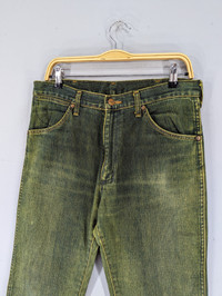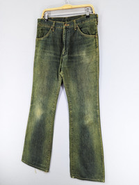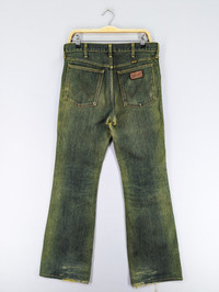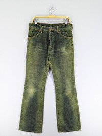 THIS IS USED CLOTHING PLEASE DO NOT EXPECTED IT TO BE LIKE NEW OR DO NOT EXPECT IN PRISTINE CONDITION PLEASE READ THE DESCRIPTION IN DETAIL BEFORE MAKE ANY PURCHASE!! ALL SALES ARE FINALS!! 💥RARE💥Vintage Wrangler Blue Bell Flared Bootcut Green Jeans CONDITION: Distressed,Stain MANUAL SIZE MEASUREMENT:- Size on tag :33 Waist:33 inches Inseam:33.5 inches Length:44 inches Hips:44 inches Leg Opening:20 inches Front Rise:13 inches Thigh:25 inches Material:Cotton 100% CODE :J543 PAYMENT POLICY ******************* •Payment processed by Paypal RETURN POLICY ******************* •We Accept Return – With Your Own Return Shipping Cost SHIPPING POLICY ******************* •We ship to worldwide except ISRAEL •Handling time 3-5 Days After Cleared Payment INTERNATIONAL DELIVERY USING DHL and Other Service