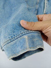 THIS IS USED CLOTHING PLEASE DO NOT EXPECTED IT TO BE LIKE NEW OR DO NOT EXPECT IN PRISTINE CONDITION PLEASE READ THE DESCRIPTION IN DETAIL BEFORE MAKE ANY PURCHASE!! ALL SALES ARE FINALS!! 💥RARE💥Vintage Wrangler Sherpa Denim Trucker Jacket Condition:Stain,Distressed MANUAL SIZE MEASUREMENT:- Size on tag:L Fits M Width [armpit to armpit] :24.5 Inches Length [shoulder to end of garment] :24.5 inches CODE :J441 PAYMENT POLICY ******************* •Payment processed by Paypal RETURN POLICY ******************* •We Accept Return – With Your Own Return Shipping Cost SHIPPING POLICY ******************* •We ship to worldwide except ISRAEL •Handling time 3-5 Days After Cleared Payment INTERNATIONAL DELIVERY USING DHL and Other Service