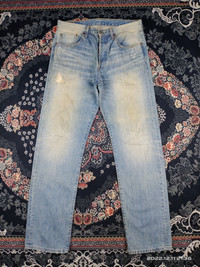 THIS IS USED CLOTHING PLEASE DO NOT EXPECTED IT TO BE LIKE NEW OR DO NOT EXPECT IN PRISTINE CONDITION PLEASE READ THE DESCRIPTION IN DETAIL BEFORE MAKE ANY PURCHASE!! ALL SALES ARE FINALS!! 💥RARE💥Levis 501 Faded Blue Wash Distressed Denim Jeans Condition:Distressed,Stain MANUAL SIZE MEASUREMENT:- Waist:32 inches outseam:43.5 inches Inseam:33 inches Material:Denim CODE : J214 PAYMENT POLICY ******************* •Payment processed by Paypal RETURN POLICY ******************* •We Accept Return – With Your Own Return Shipping Cost SHIPPING POLICY ******************* •We ship to worldwide except ISRAEL •Handling time 3-5 Days After Cleared Payment INTERNATIONAL DELIVERY USING DHL and Other Service
