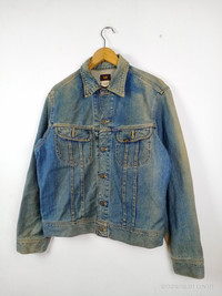 THIS IS USED CLOTHING PLEASE DO NOT EXPECTED IT TO BE LIKE NEW OR DO NOT EXPECT IN PRISTINE CONDITION PLEASE READ THE DESCRIPTION IN DETAIL BEFORE MAKE ANY PURCHASE!! ALL SALES ARE FINALS!! 💥RARE💥Vintage 80s 90s Lee Riders Distressed Trucker Denim Jacket Condition:Distressed,Faded,Stain MANUAL SIZE MEASUREMENT:- Size on tag:L Fits M Width [armpit to armpit] :22 Inches Length [shoulder to end of garment] :25 inches CODE : J233 PAYMENT POLICY ******************* •Payment processed by Paypal RETURN POLICY ******************* •We Accept Return – With Your Own Return Shipping Cost SHIPPING POLICY ******************* •We ship to worldwide except ISRAEL •Handling time 3-5 Days After Cleared Payment INTERNATIONAL DELIVERY USING DHL and Other Service