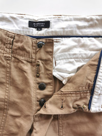 Burberry Blue Checkered Legs Fatigue Pants. Size 31. Back print logo at pocket. Used item in good condition. Button is broken. Actual Manual Measurement In Inch While Jeans Are Lay Flat. Waist : 15.5' Front Rise : 10' Thigh : 12' Knee : 9' Leg Opening : 9' Inseam : 28' Outseam : 37.5' 🗳️ Shipping W.Wide With : DHL EXPRESS. 🧾 Payment Methods : PAYPAL ONLY. 🫔 Message for any question. No refund, Return, Trade or Exchange. All Sale Are Final. 📝 Note : Dont worry about Tax. All parcels marked like gift with $25-$30 Value. (CODE A197)