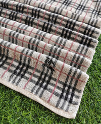 Check Burberry Shower Towels. Made in Japan. Used item in good condition. A little bit torn. Manual inch measurements : Length 46.5' x Height 21'. SHIPPED VIA DHL EXPRESS (Estimated delivery 7-9 working days to reach your home). Noted : After purchase, please leave your phone number. I want to fill in DHL EXPRESS form. Thank you. Dont worry about Tax. All parcels marked like gift with Usd 25-30. (CODE A362)