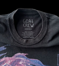 G.O.A.T CREW SIZE S - M ( 19.5 x 26.5 ) USED ITEM MADE IN HONDURAS MATERIAL 1OO COTTON [Condition] Good condition π PLEASE READ ALL DESCRIPTION π π³οΈ Shipping W.Wide With : DHL EXPRESS. π§Ύ Payment Methods : PAYPAL ONLY. π« Message for any question. No refund, Return, Trade or Exchange. All Sale Are Final. π Note : Dont worry about Tax. All parcels marked like gift with $25-$30 Value. [Code A482]