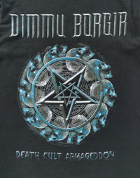 Vintage Metal Band Dimmu Borgir Death Cult Armageddon Tees. Size M. Copyright 2003. Used item in good condition. Have tiny holes (refer photos). Actual Manual Measurement In Inch While Item Are Lay Flat. Chest : 20' Length : 29' 🗳️ Shipping W.Wide With : DHL EXPRESS. 🧾 Payment Methods : PAYPAL ONLY. 🫔 Message for any question. No refund, Return, Trade or Exchange. All Sale Are Final. 📝 Note : Dont worry about Tax. All parcels marked like gift with Usd 25-30. [Code A146]