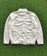 Vintage Robinson Fleece Zip Sweaters. White color with dark blue line. Size M. Vintage item in good condition. Have a little bit yellowish at sleeve. Manual Inch Measurement While Item Lay Flat. Chest : 21.5' Length : 25.5' 🗳️ Shipping W.Wide With : DHL EXPRESS. 🧾 Payment Methods : PAYPAL ONLY. 🫔 Message for any question. No refund, Return, Trade or Exchange. All Sale Are Final. 📝 Note : Dont worry about Tax. All parcels marked like gift with $25-$30 Value. Noted : After purchase, please write your phone number. I want to fill in shipping form. Thank you. (CODE A410)