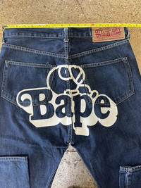 IG: DallasBapeClub Japanese Denim Vintage Bape Jeans with Logo on the back Measurements are in the pictures DM any questions