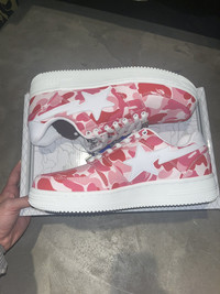 Bapesta ABC 20th anniversary pink Camo Fits slightly big about a half size up Sz 8 would still fit, Sz 8.5 would be perfect fit Ask. Negotiate Will ship same day of purchase or next morning