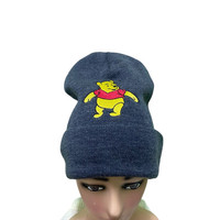 Vintage Pooh Disney Beanie Hat Grey Colour
