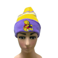 Vintage Pooh Embroidery Beanie Yellow/purple Colour