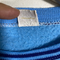 Vintage 80s Roadrunners Coyote Endoro 1984 Sweatshirt Short Sleeve L Size Blue Color Code 1G P2P : 22 inch Length : 27 inch Condition : 8/10 See Photo For Detail. — Terms & Conditions —— Returns accepted only when items come damaged or different from description. The auctioned item is sold with the “seen and liked” formula, in the state in which it is found as in the photograph and description. Eventual returns will be accepted only in the presence of verified discrepancy of the object from the description and the photos. No reimbursement is made on shipping costs (forward shipping and return shipping) and all other expenses (customs duties). In the case of a return, the goods must be returned in the same state of receipt. Any product returned with obvious signs of wear or tear will not be reimbursed. For any doubts, please contact us before make the purchase. Contact us for further info PLEASE ASK ANY QUESTION BEFORE BUYING!!! SHIPPING & HANDLING INFORMATION Shipping cost=$25 for expedited worldwide shipping. ( request this shipping) We are using DHL EXPRESS it take 3-5 days only to arrive with Tracking Number after postage. Economic Postage : $15 worldwide IMPORTANT: PLEASE LEAVE YOUR PHONE NUMBER ON THE NOTE WHILE MAKE A PURCHASE.. ALL SOLD ITEM NO RETURNABLE. SO PLEASE READ AND SEE ALL PHOTO CAREFULLY. Payment: PAYPAL only Thank you very much for watching my item.