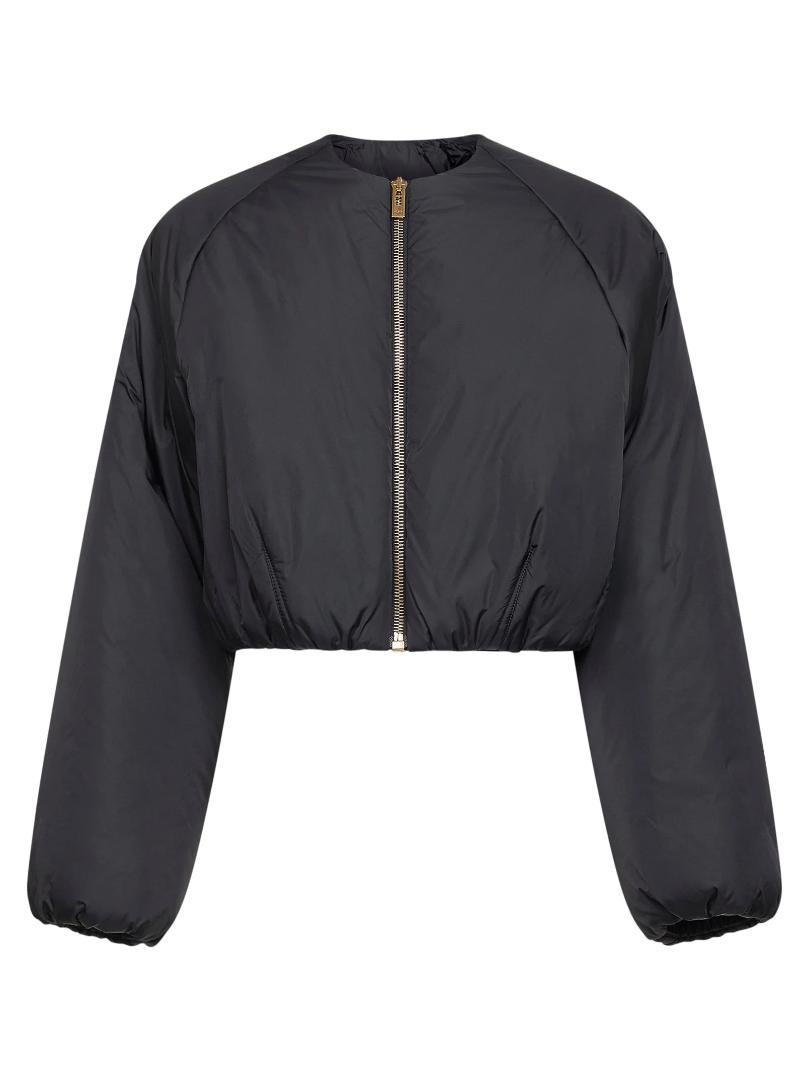 - Front metal zip closure - Crewneck - Long raglan sleeves, elasticated pleated cuffs - Elasticated pleated hem - Lined; lightly padded - Cropped cut - Rounded fit - Black color - 100% polyamide - Made in italy Synthetic: Polyamide100 % Made in: ITALIA Season: P26 AA9V1210W158C-995