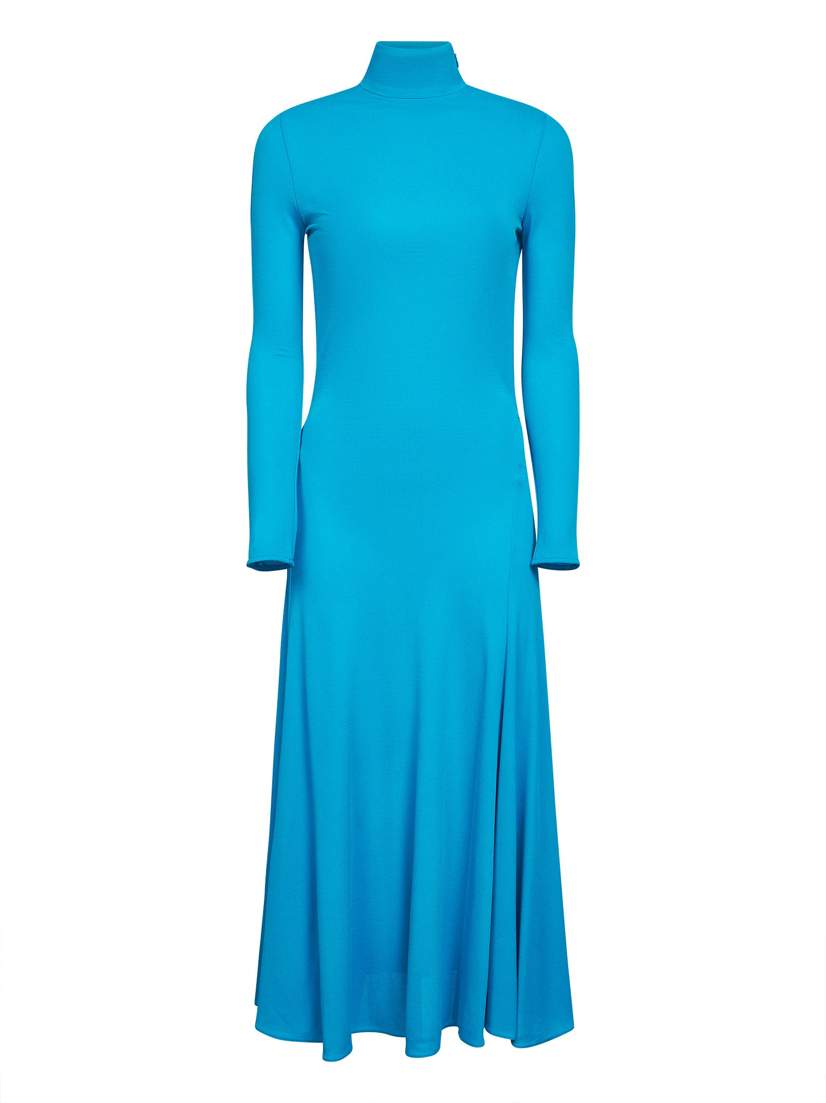 - Side invisible zip closure at collar - High collar - Long sleeves - Heart-shaped cut-out at back - Flared bottom - Ankle length - Fit and flare fit - Turquoise color - 100% viscose - Made in italy Synthetic: viscose100 % Made in: ITALIA Season: A25 AA9R2789J070B-556