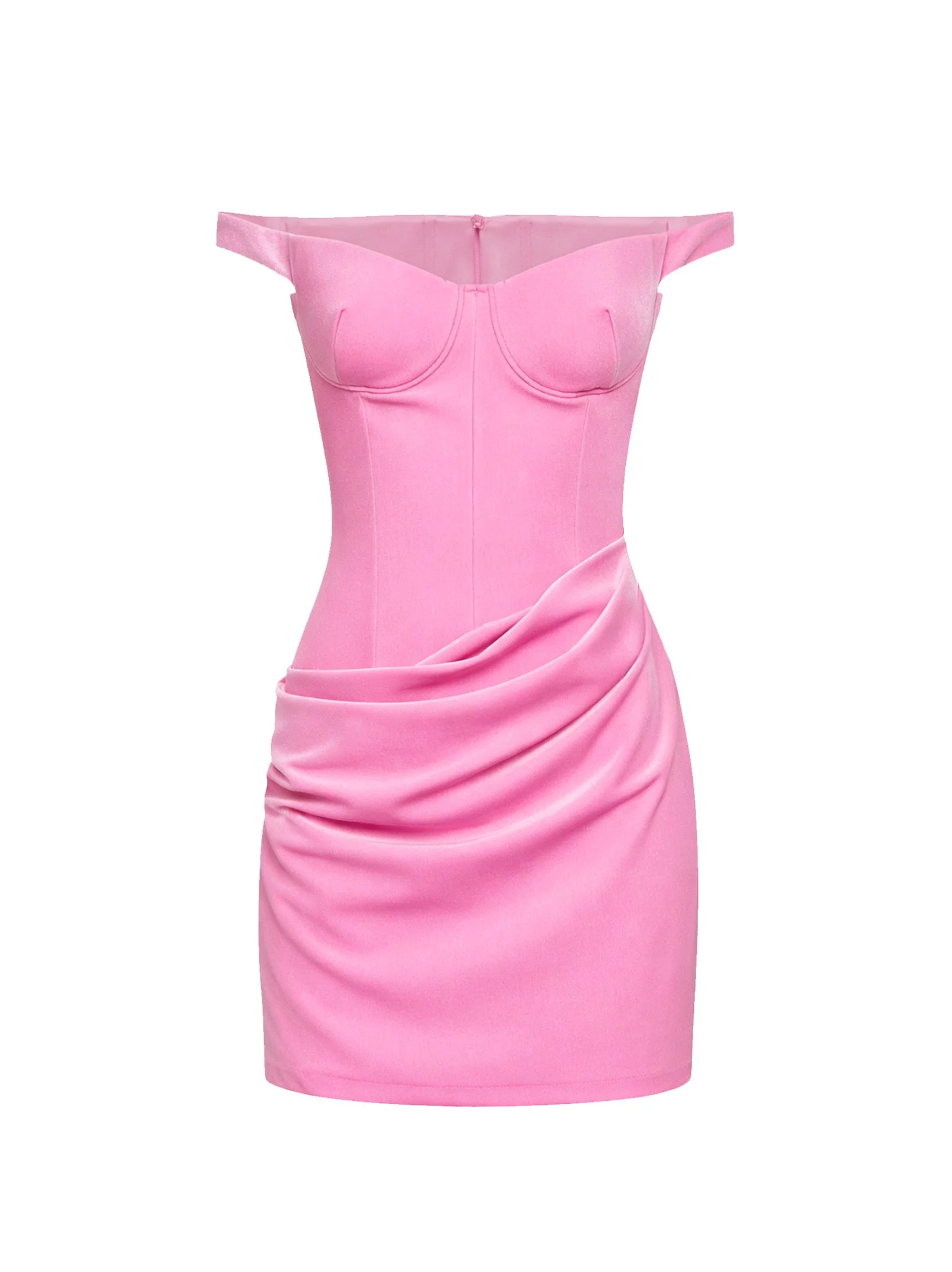 - Back zip closure - Off-the-shoulder bardot neckline; pre-shaped cups with underwire - Longline corset bodice - Asymmetric draped panel at hips - Slightly asymmetric hemline - Peony color - 93% polyester, 7% elastane - Made in extra eu Synthetic: Polyester93 % Synthetic: Elastane7 % Made in: Australia Season: P26 D1611RE26-PEONY