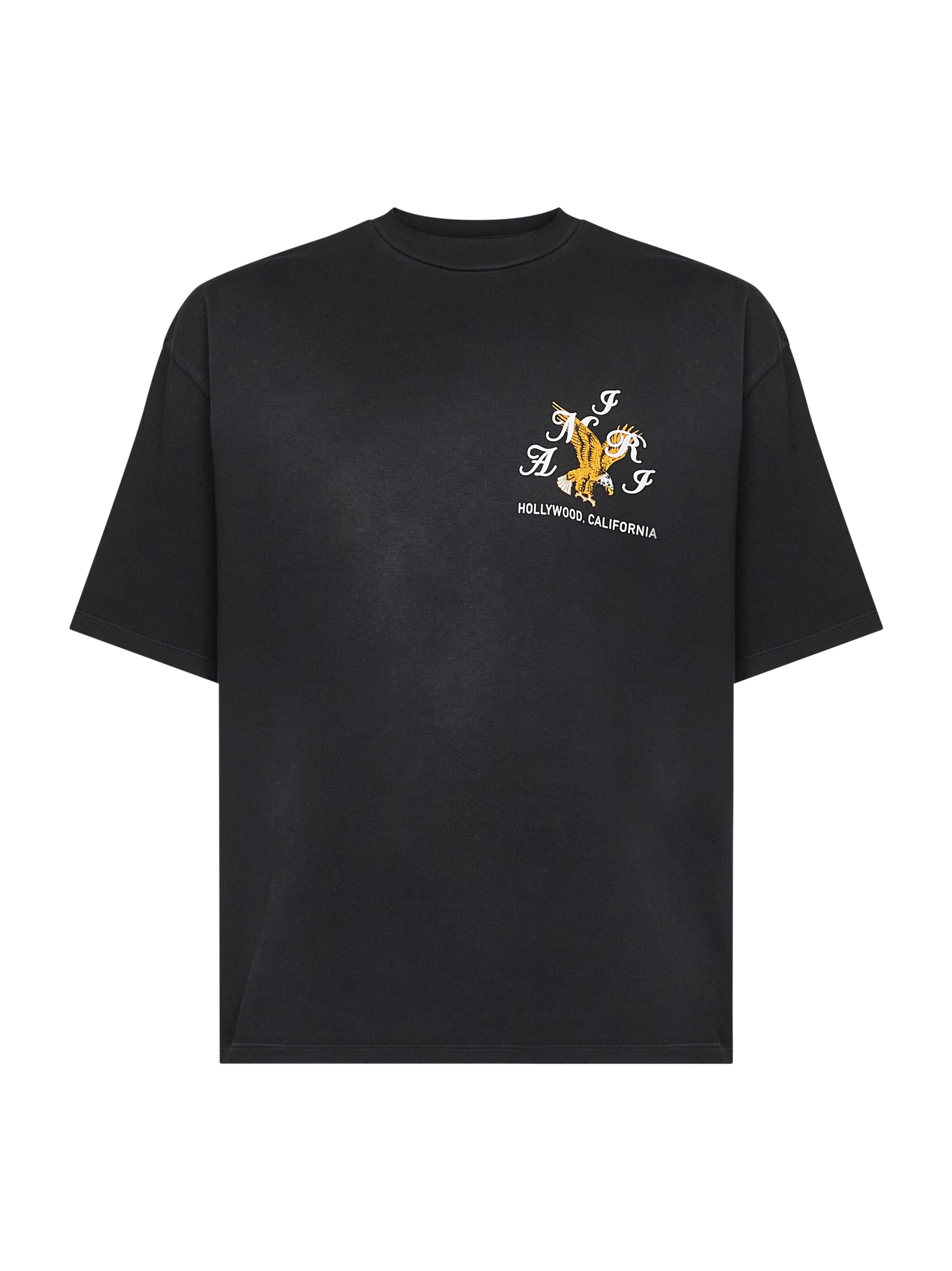 - Ribbed crewneck - Short sleeves, dropped shoulders - Amiri eagle graphic print at chest and back; contrasting "dreamers" chain stitch embroidery at back - Faded cotton jersey design with distressed detailing - Oversized fit - Black color - 100% cotton - Made in italy Natural (Veg): Cotton100 % Made in: Italy Season: A25 AMJYTE1232-001
