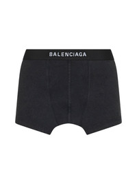 - Elasticated waistband with contrasting jacquard balenciaga logo at front; mid-waist - Cut-off crotch - Boxer-style faded-effect stretch cotton jersey design - Mini length - Black color - 93% cotton, 7% elastane - Made in portugal Natural (Veg): Cotton93 % Synthetic: Elastane7 % Made in: Portogallo Season: A25 839695TSVZ11041