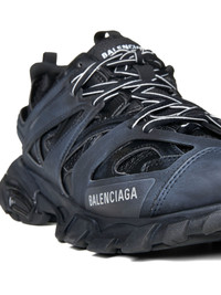 Balenciaga’s Track faux leather, rubber, nylon and mesh sneakers in shades of black featuring logo at the side and tongue, embossed monogram at the toe sole, size embroidered at the cap toe and name of the style at the back. Color: Black Composition: 75% polyurethane 21% polyester 4% nylon Country of manifacture: Extra EU ID designer: 542436W1GB11000
