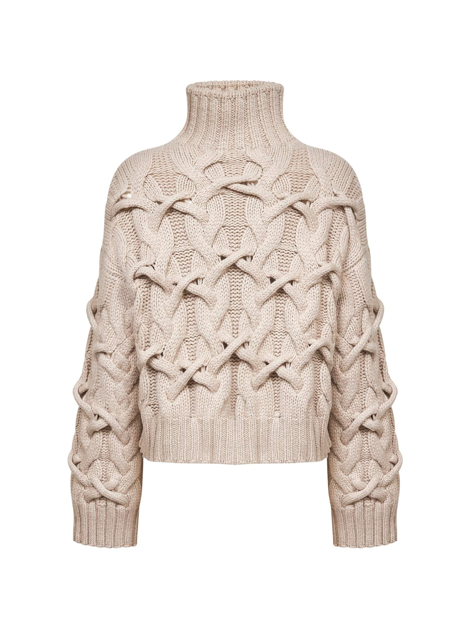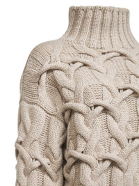 - Ribbed mock neck - Wide long sleeves, dropped shoulders - Ribbed cuffs and bottom band - Three-dimensional cable knit design - Relaxed fit - Beige color - 100% cashmere - Made in italy Made in: Season: A25 M52365804-C9504