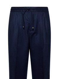 Virgin wool flannel leisure fit trousers with drawstring and double pleats