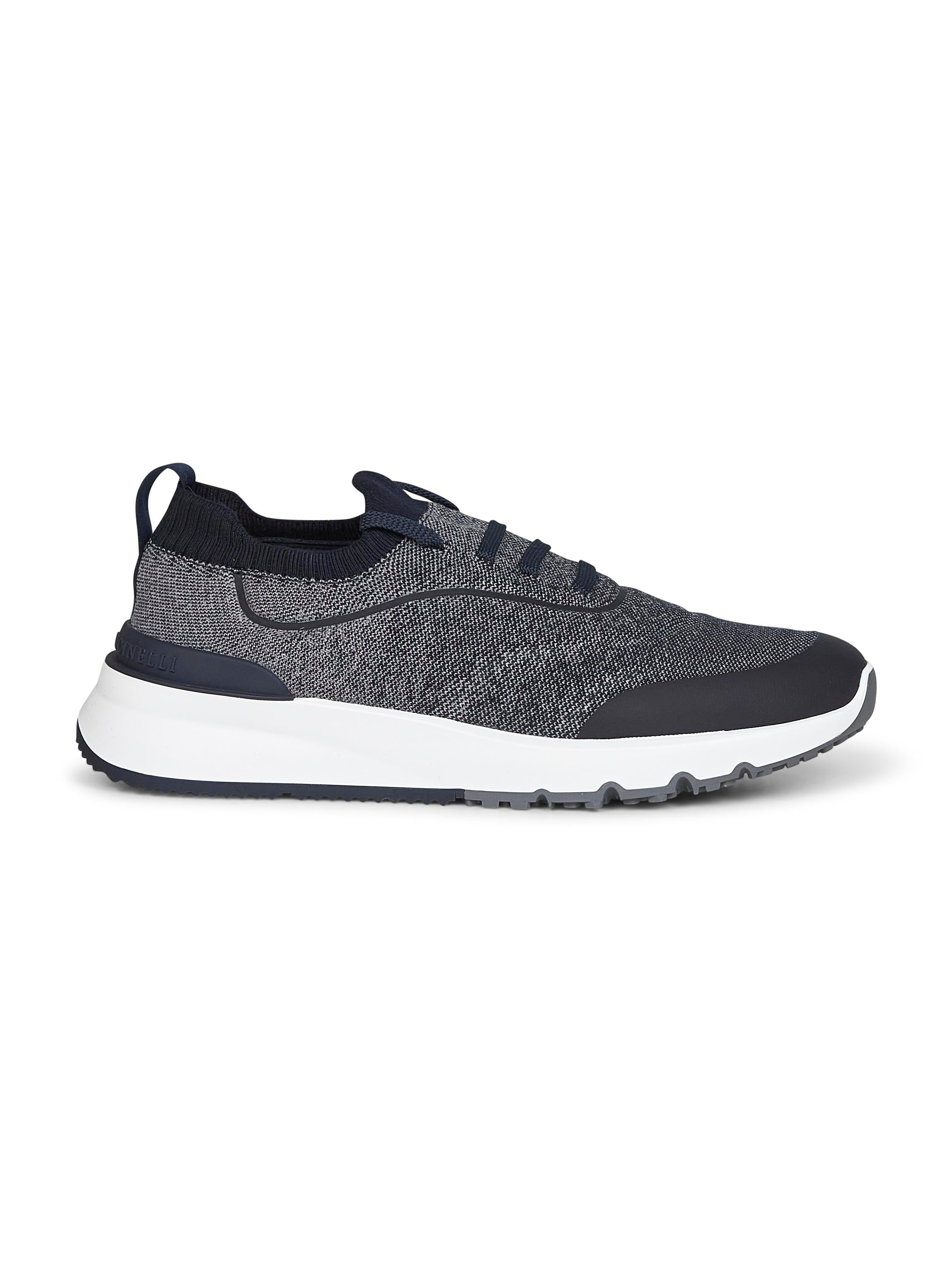 - Slip-on; adjustable flat cotton laces - Sock-style ribbed knit insert at ankle; grosgrain pull-tab at back - Techno stretch cotton knit upper with heat-taped trims - Rubber insert at back with embossed brunello cucinelli lettering - Fabric lining - Detachable insole - Tpu rubber sole - Blue color - 100% cotton - Made in italy Natural (Veg): Cotton100 % Made in: ITALIA Season: A25 MZUEHRO342-CDY87