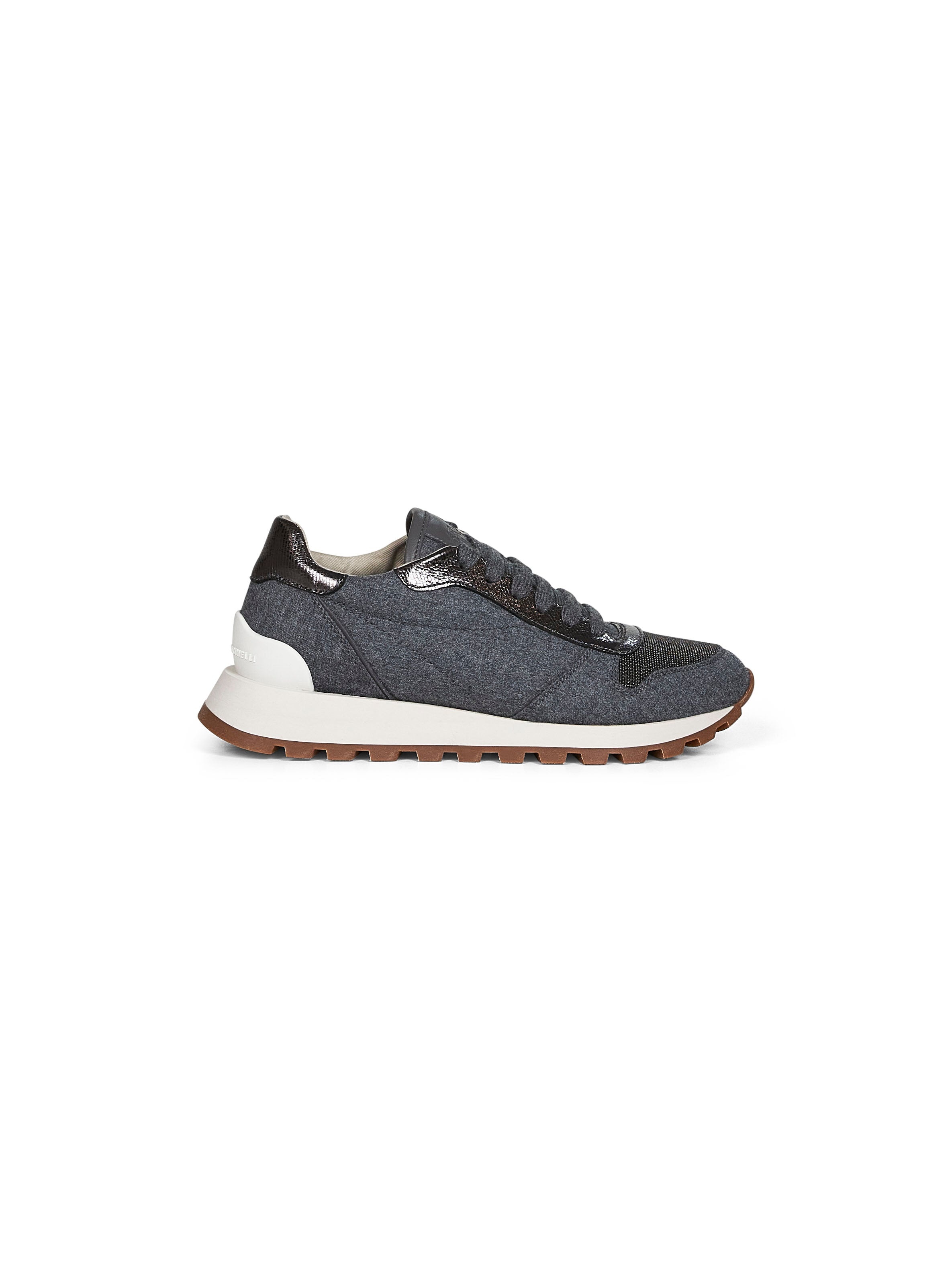 Virgin wool flannel and lamé calfskin runners with precious toe