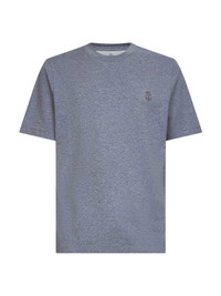 - Crewneck - Short sleeves - Contrasting solomeo crest printed at chest - Flat pressed hem cuffs and hem - Cotton jersey design - Regular fit - Grey color - 100% cotton - Made in italy Natural (Veg): Cotton100 % Made in: ITALIA Season: A25 M0B138440-CJB11