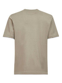 - Crewneck - Short sleeves with flat pressed hem - Flat pressed hem - Layered-effect pearl-colored edge detailing at crewneck, sleeves and hem - Regular fit - Khaki color - 100% cotton - Made in italy Natural (Veg): Cotton100 % Made in: ITALIA Season: P26 M0B137427-CUX24