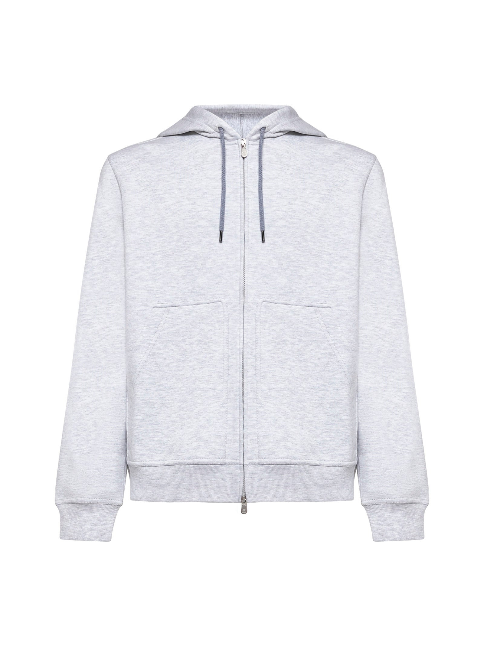Front double-slider zip closure Adjustable hood with drawstring Long sleeves Front patch pockets Ribbed cuffs and bottom band Double fleece with contrasting interior Pearl grey color 64% Cotton, 26% Polyamide, 6% Cashmere, 4% Silk Made in Italy Size and fit: Model is 184 cm tall and wears size M ID designer: MM8319069G-C1250