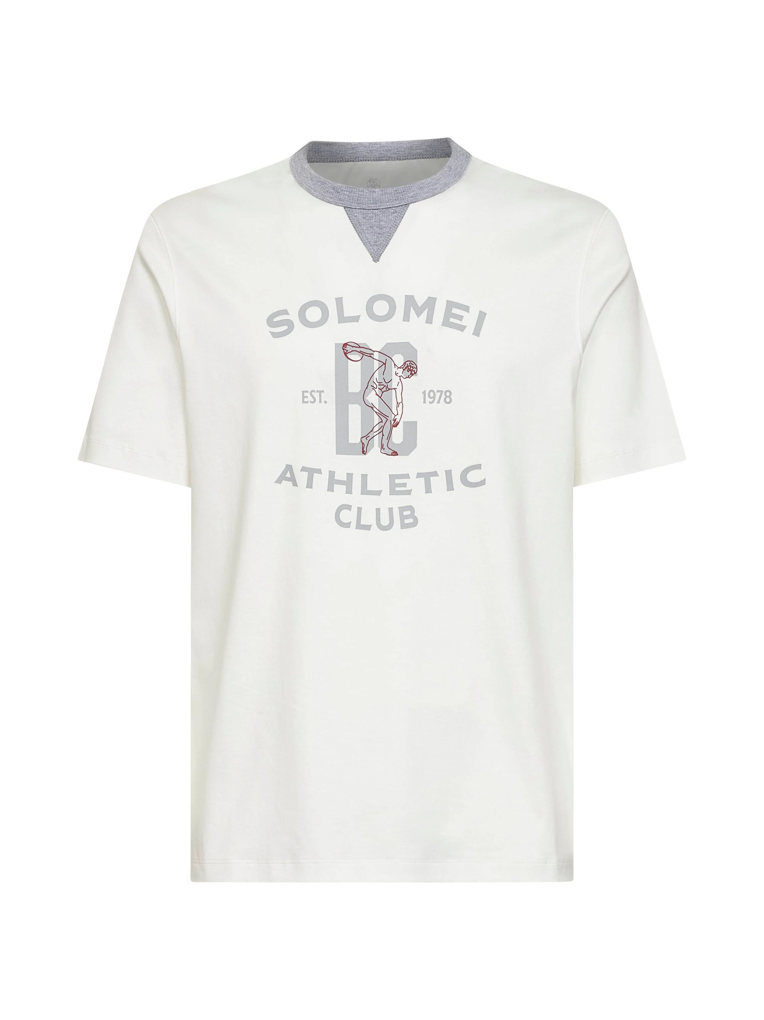 - Contrasting ribbed crewneck with triangle detail - Short sleeves with flat pressed hem - Contrasting monogram with lettering print at front - Flat pressed hem - Regular fit - White color - 100% cotton - Made in italy Natural (Veg): Cotton100 % Made in: ITALIA Season: P26 M0B131001G-CFR27