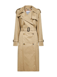 - Double-breasted eight-button placket - Classic collar with chin strap, notch lapel - Long raglan sleeves, buttoned epaulettes, adjustable belted cuffs with leather buckles - Matching adjustable and detachable belt at the waist with leather b-buckle - Side welt pockets - Centre back slit - Sand beige burberry check cotton lining and undercollar - Water-resistant cotton gabardine design - Regular and relaxed fit - Beige color - 100% cotton - Made in the uk Natural (Veg): Cotton100 % Made in: Regno Unito Season: P26 8119066-A1435