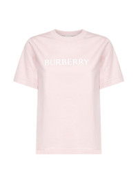 - Ribbed crewneck - Short sleeves - Contrasting textured-effect screen-printed burberry logo lettering at front - Straight hem - Lightweight cotton jersey design - Regular fit - Bouquet pink color - 100% cotton - Made in portugal Natural (Veg): Cotton100 % Made in: Portogallo Season: P26 8118976-C2989