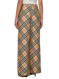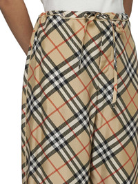 Burberry’s silk pajama-style trousers featuring iconic check print in sand tones, adjustable drawstring at the waist, button and zip fly, side pockets, back pocket, wide leg and tone-on-tone piping. Color: Sand Size and fit: Model is 173 cm tall and wearing a size UK 8 Composition: 100% silk Country of manifacture: Italy ID designer: 8094539-B9368