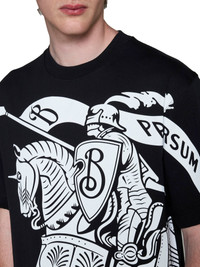 Burberry's black cotton t-shirt featuring a crew neck and white oversized Equestrian Knight print. Color: Black Size and fit: Model is 186 cm tall and wearing a size M Composition: 100% cotton Country of manifacture: Portugal ID designer: 8095058-A1189