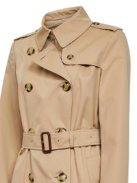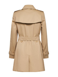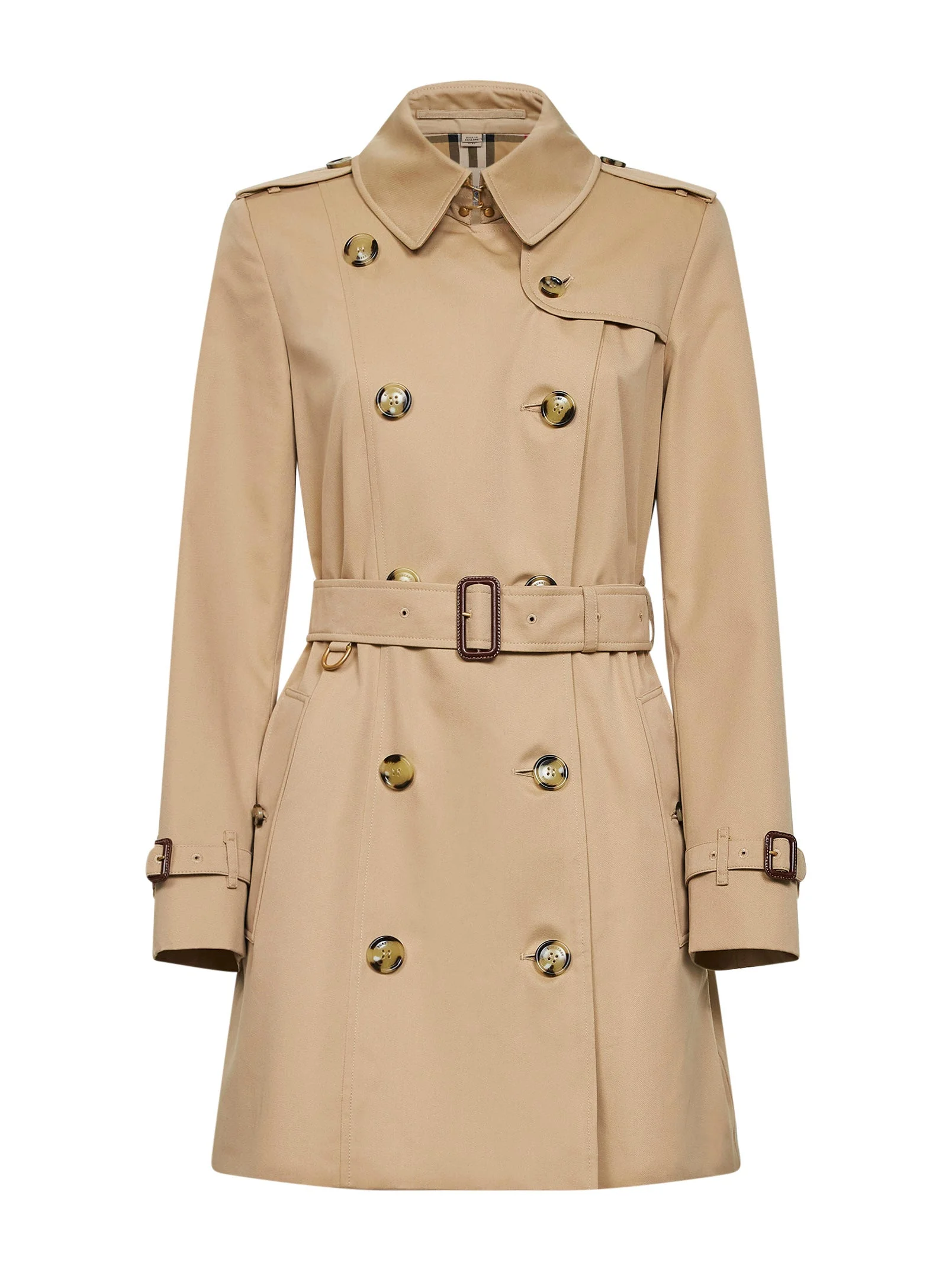 - Double-breasted ten-button placket - Classic collar with hook-and-eye closure; chin strap - Long sleeves, buttoned epaulettes, adjustable belted cuffs with leather buckles - Matching adjustable and detachable belt at the waist with leather buckle and metal rings - Side buttoned welt pockets - Back storm shield; gun flap at shoulder - Buttoned central slit at back - Burberry check lining and undercollar - Rainproof cotton gabardine design - Regular fit - Honey beige color - 100% cotton - Made in the uk Natural (Veg): Cotton100 % Made in: Regno Unito Season: P26 8117241-A1366