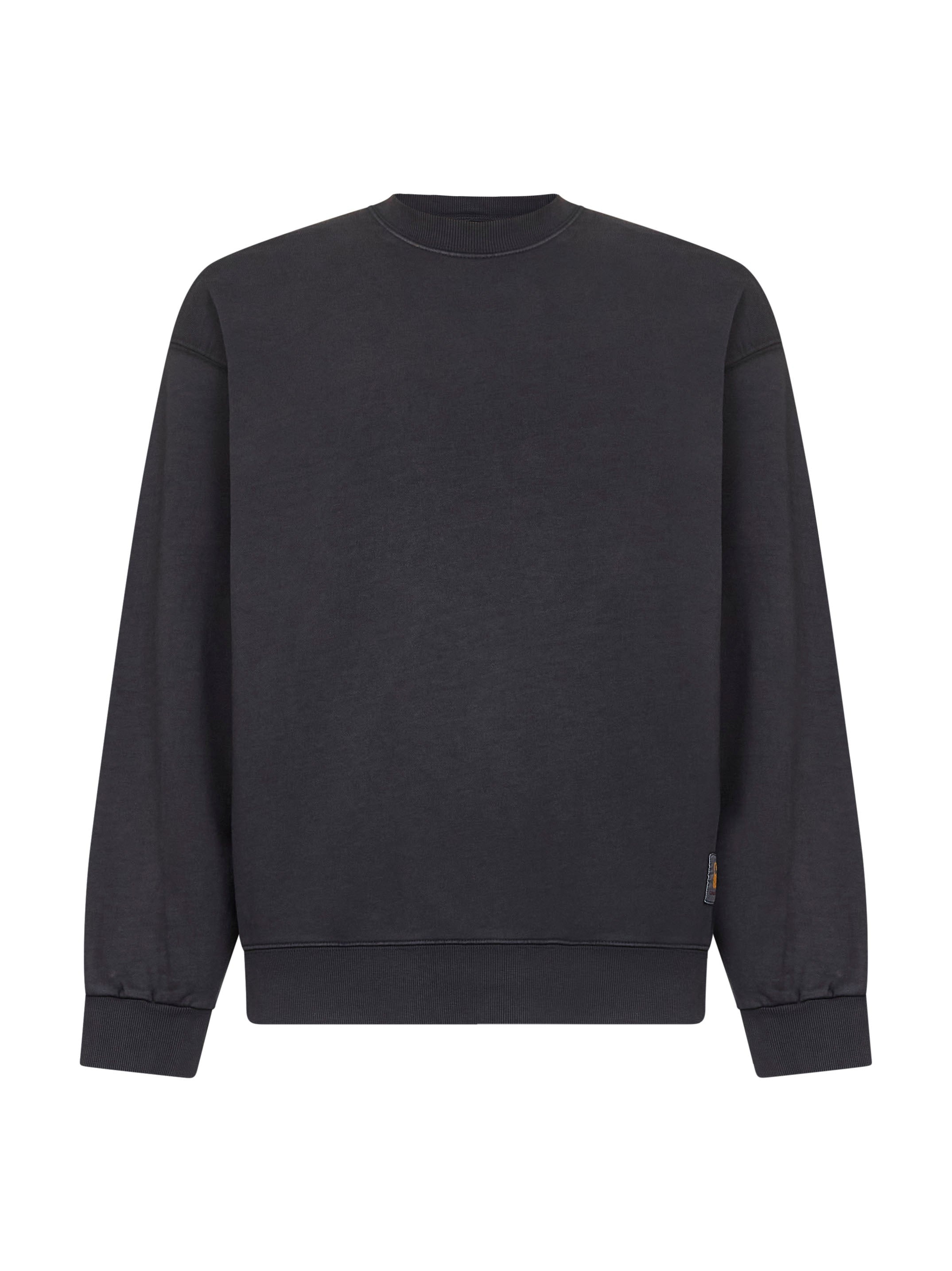 - Ribbed crewneck - Long sleeves, dropped shoulders - Square fabric label at bottom front - Ribbed cuffs and bottom band - Heavyweight unbrushed cotton jersey design with "chalk wash" treatment for a sun-faded effect - Loose fit - Black color - 100% cotton - Made in extra eu Natural (Veg): Cotton100 % Made in: Bangladesh Season: A25 I035186-895F