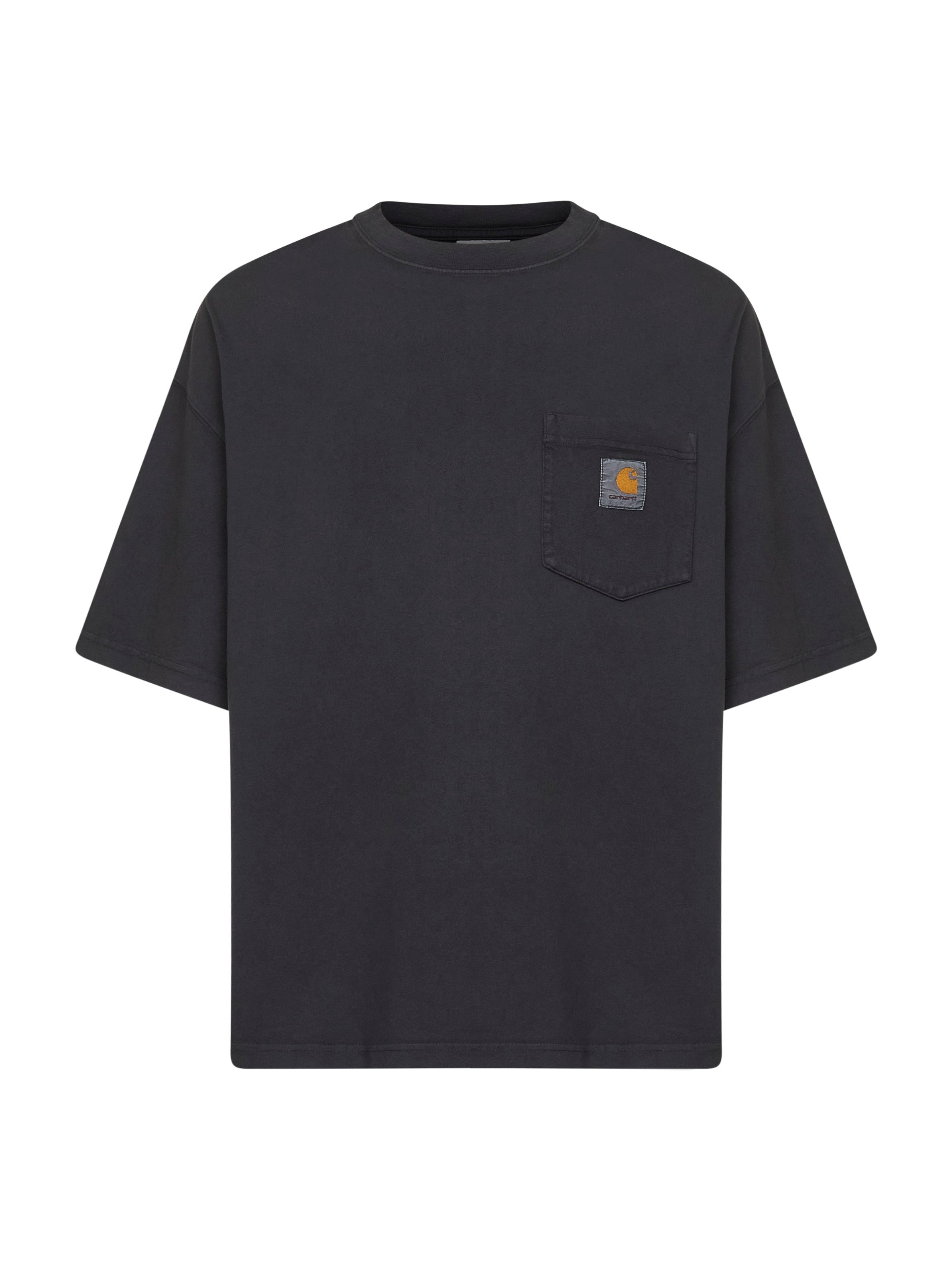 - Ribbed crewneck - Short sleeves, dropped shoulders - Chest pocket with square fabric label - Medium weight cotton design with "chalk wash" treatment for a sun-faded effect - Boxy loose fit - Black color - 100% cotton - Made in extra eu Natural (Veg): Cotton100 % Made in: Bangladesh Season: A25 I035140-895F