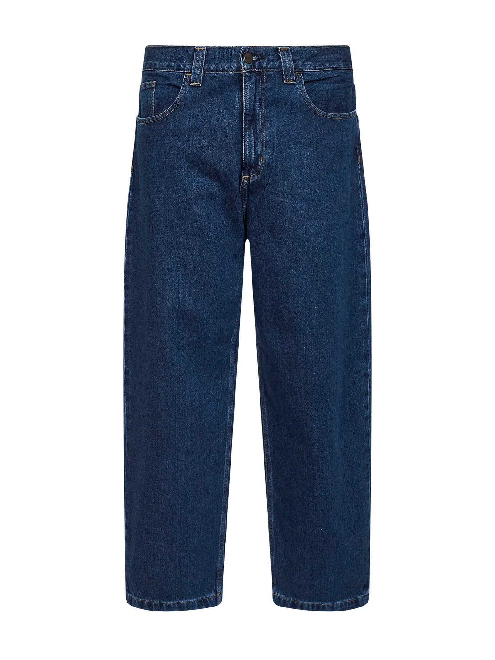 - Front zip-fly closure, metal logo button - Waist with belt loops; low crotch - Five-pocket model - Square fabric label at back pocket - Back yoke - Stonewashed smith cotton denim design - Loose straight fit - Blue color - 100% cotton - Made in extra eu Natural (Veg): Cotton100 % Made in: Tunisia Season: P26 I035893-0106