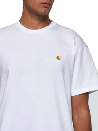 Carhartt WIP’s Chase white t-shirt featuring a crew neck and logo embroidered on the chest. Color: White - gold Size and fit: Model is 187 cm tall and wearing a size L Composition: 100% cotton Country of manifacture: Extra EU ID designer: I026391-00RXX