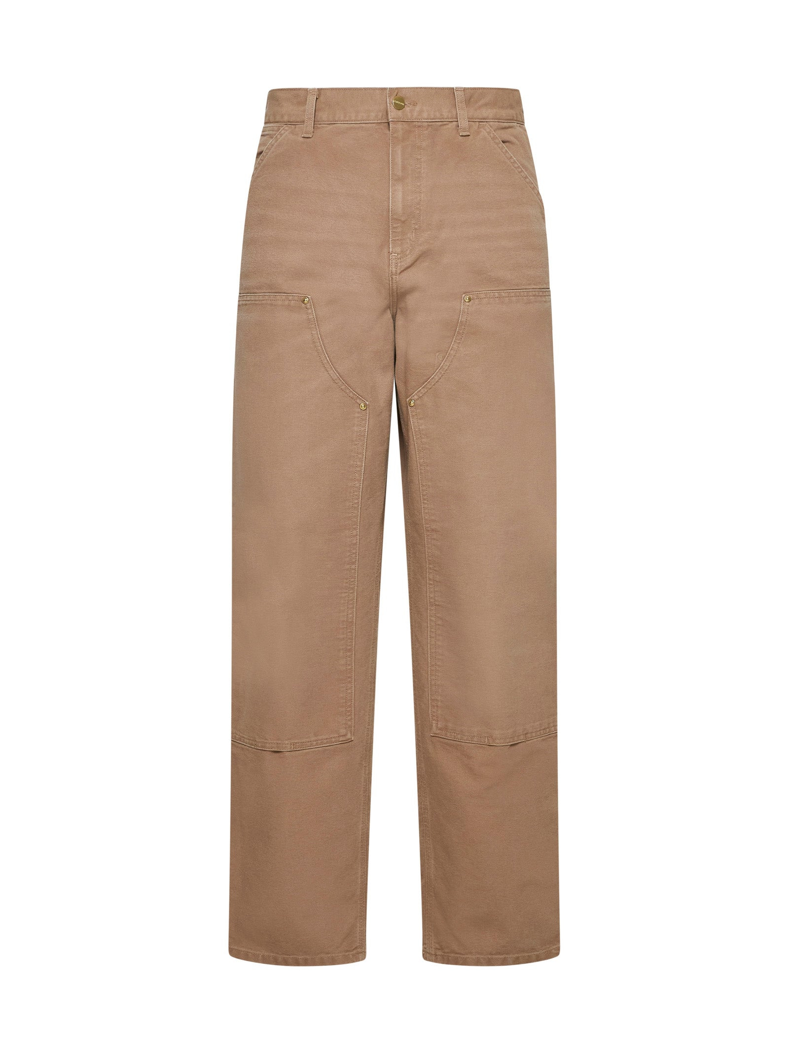 Carhartt WIP’s tan cotton cargo trousers featuring belt loops, button and zip fly, four-pocket cut, patches on the leg with rivets, side pockets, back logo-label and wide leg. Color: Peanut aged Size and fit: Model is 186 cm tall and wearing a size 31 Composition: 100% organic cotton Country of manifacture: Extra EU ID designer: I031501322FS3K