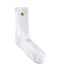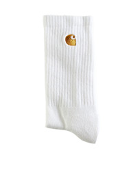 Carhartt WIP’s white stretch cotton blend socks featuring ribbed hem and golden logo embroidered on the side. Color: white - gold Composition: 81% cotton 17% polyester 2% lycra Country of manifacture: Extra EU ID designer: I029421-00RXX
