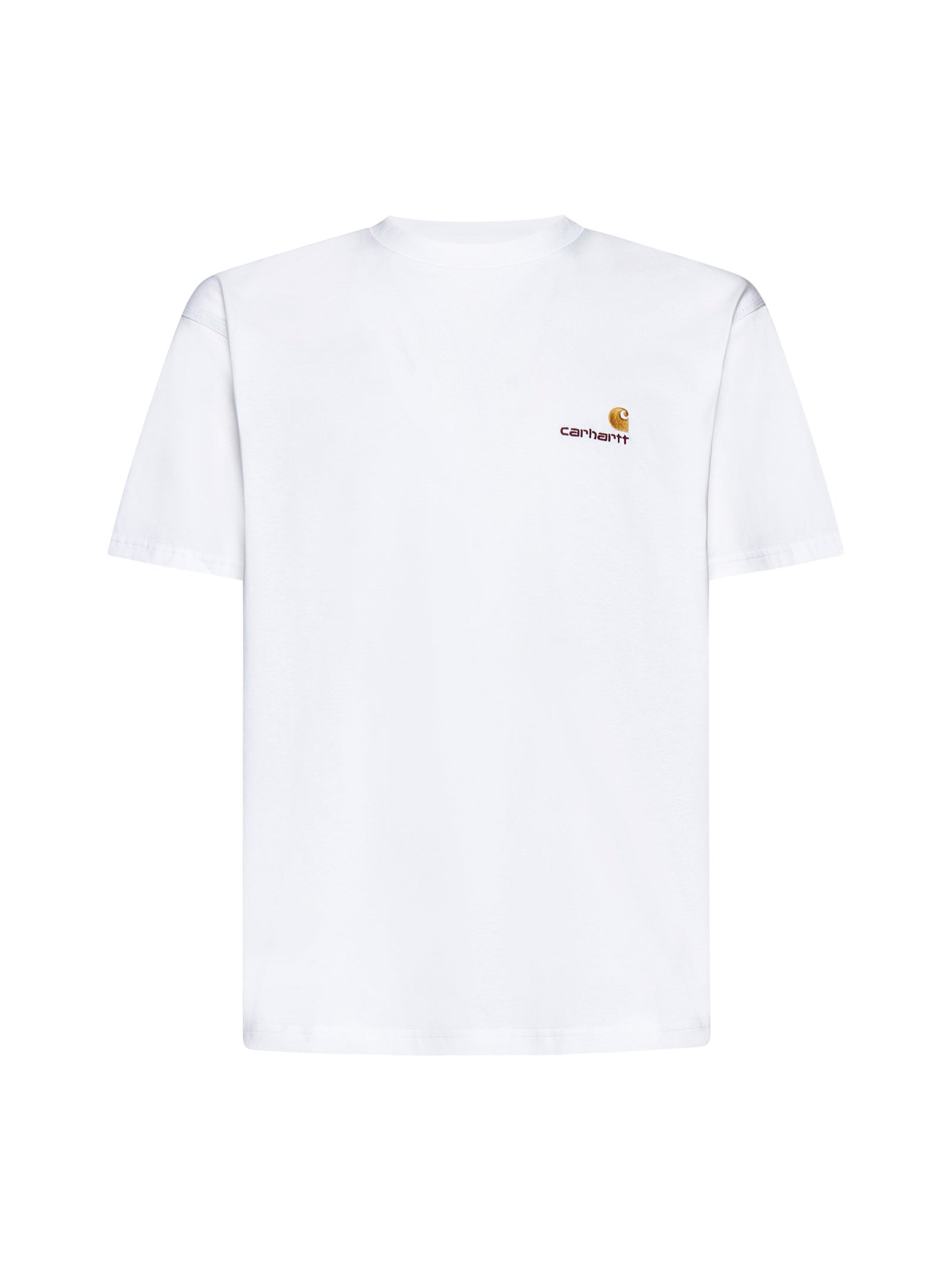 Carhartt WIP’s unisex white cotton t-shirt featuring a crew neck and logo embroidered on the chest. Color: White Size and fit: Model is 187 cm tall and wearing a size M Composition: 100% organic cotton Country of manifacture: Extra EU ID designer: I029956-02XX