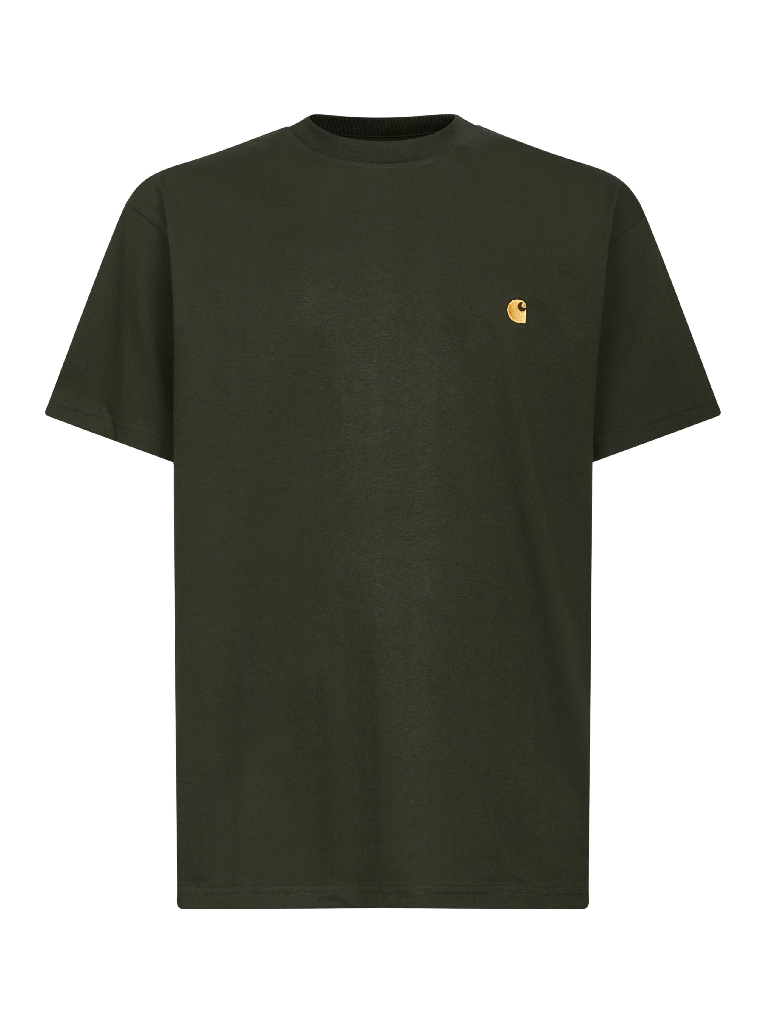 - Ribbed crewneck - Short sleeves, soft shoulders - Gold "c" logo embroidered at chest - 235 g/m² combed cotton jersey design - Loose fit - Olive color - 100% cotton - Made in extra eu Natural (Veg): Cotton100 % Made in: Bangladesh Season: A25 I026391-3CBXX