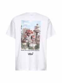 - Ribbed crewneck - Short sleeves, dropped shoulders - Contrasting logo lettering printed at chest; multicolor artwork print at back - 175 g/sqm cotton jersey design - Loose fit - White color - 100% cotton - Made in bulgaria Natural (Veg): Cotton100 % Made in: Bulgaria Season: A25 I035492-02XX