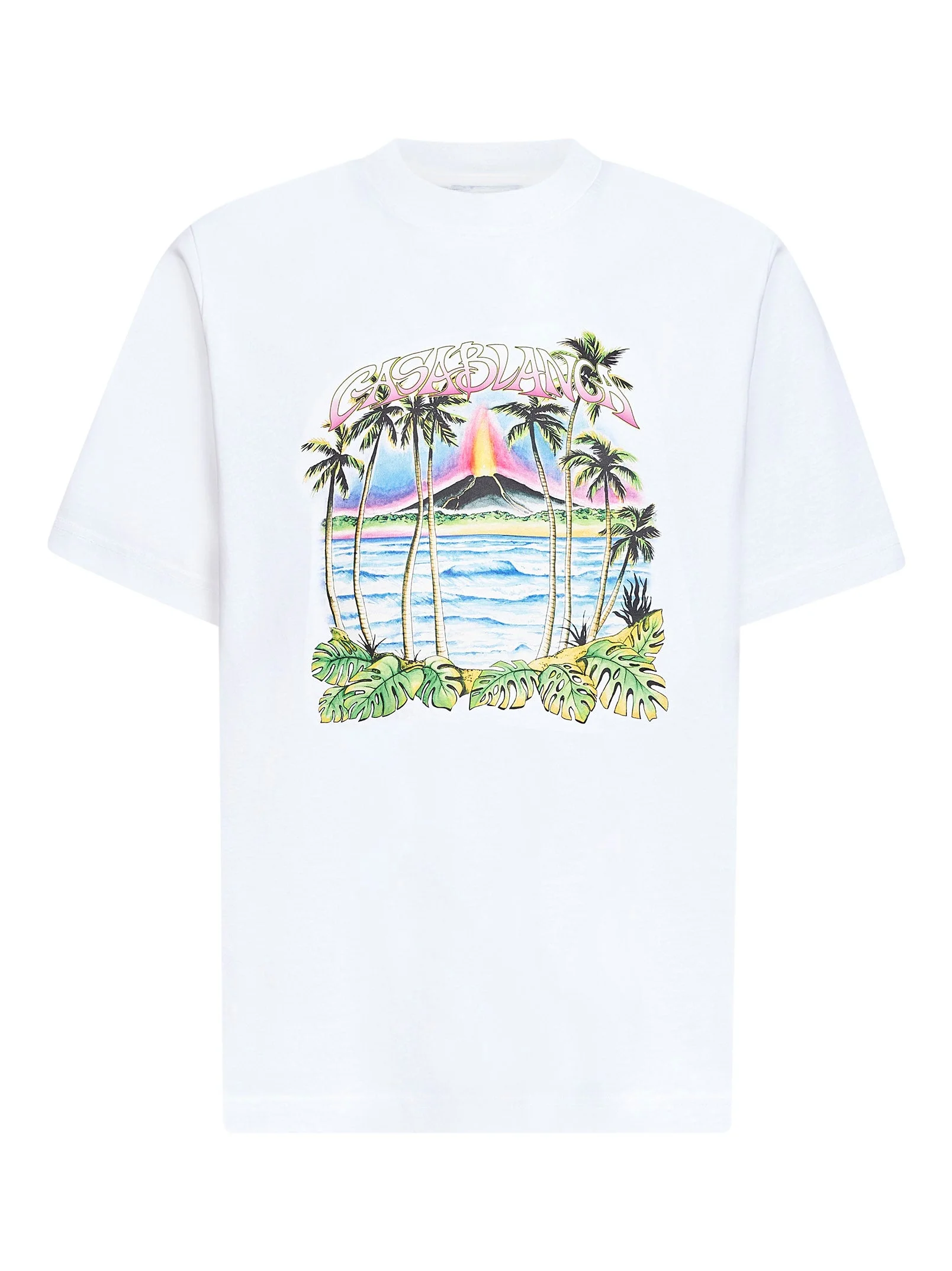 - Ribbed crewneck - Short sleeves - Multicolor volcano printed artwork with logo lettering printed at front - Straight hem - Organic cotton jersey design - Relaxed fit - White color - 100% cotton - Made in portugal Natural (Veg): Cotton100 % Made in: Portogallo Season: P26 MSP26JTS00122EXBC-WHITEJERSEY