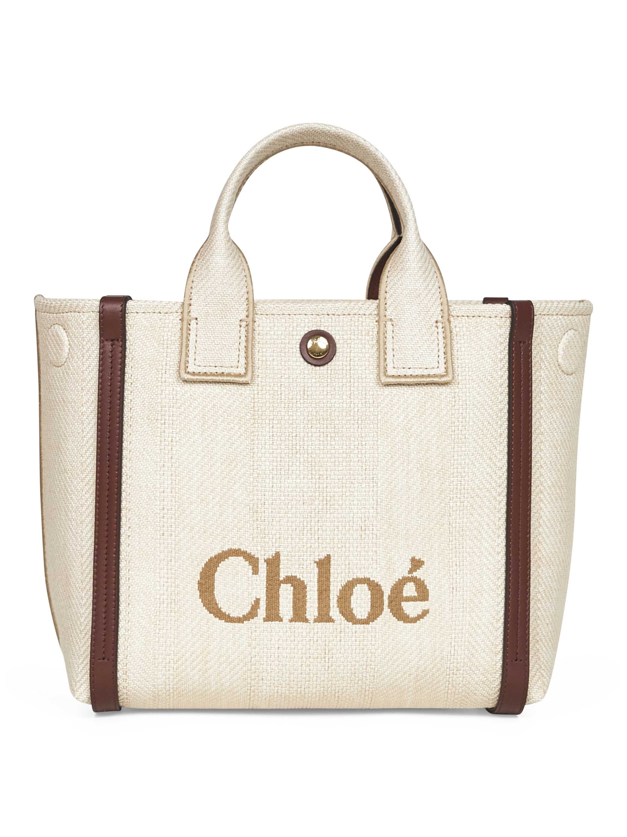 - Snap fastening - Double top handle; adjustable and detachable leather shoulder strap - Oversized contrasting chloe logo at front - Interior: one main compartment, one flat pocket - Sides magnets to adjust the shape - Striped raffia-effect fibres design with contrasting vertical leather bands - 27 x 23.5 x 12 cm; handle drop: 11 cm, max shoulder strap drop: 58 cm - Beige color - 69% cotton, 31% polyamide - Made in italy Natural (Veg): Cotton69 % Synthetic: Polyamide31 % Made in: ITALIA Season: A25 CH25US911P1924P