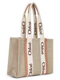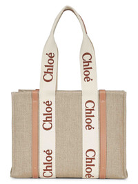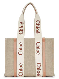- Open top - Double fabric top handle with leather pads - Wooden orange chloe logo embroidery webbing at front and back; wooden orange shiny calfskin strips at front and back - Interior: one main compartment, one flat pocket - Linen canvas design with calfskin details - 37 x 26 x 12 cm; handle drop: 27 cm - Beige color - 100% linen - Made in italy Natural (Veg): Linen/Flax100 % Made in: ITALIA Season: A25 CHC23AS383L17847