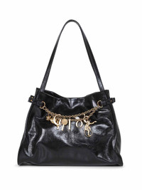 - Magnetic fastening - Double top leather handle - Double metal chain at front with dangling charms and chloe letters - Interior: one main compartment, one flat pocket; canvas lining - Gusseted sides with leather straps - Gold-toned metal hardware - Soft curved shiny calf leather design - 33 x 25 x 19; handle drop 26.5 cm - Black color - 100% calf leather - Made in italy Furs & Skins: Calf Leather100 % Made in: ITALIA Season: A25 CH25AS870P60001