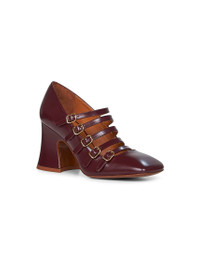 - Multiple adjustable instep straps with gold-toned metal buckles with engraved chloe logo - Square toe - Leather-covered flared block heel - Shiny calf leather upper - Lambskin lining and insole - Leather sole - Heel height: 80mm - Burnt purple color - 100% calf leather - Made in italy Furs & Skins: Lamb Skin100 % Made in: ITALIA Season: A25 CHC25A11COL56D