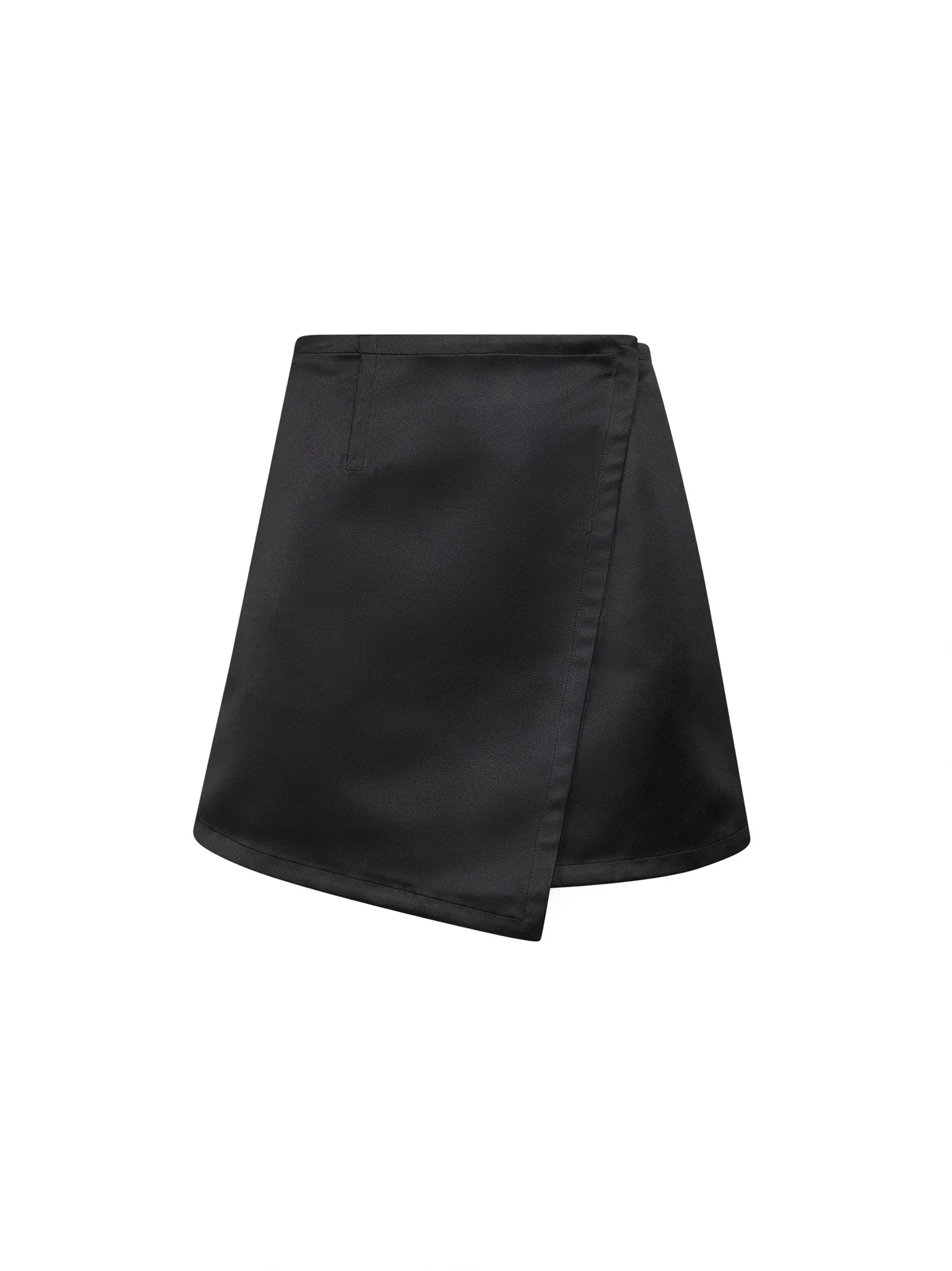 Black duchesse satin wrap mini skirt