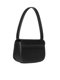 Diesel’s 1DR black leather shoulder bag featuring a top handle, tone-on-tone macro logo plaque on the flap, detachable shoulder strap, concealed magnetic fastening, internal flat pockets and silver-tone metal hardware. Color: Black Size and fit: 20 x 10 x 5 cm Strap: 113 cm Composition: 100% leather Country of manifacture: Extra EU ID designer: X08396PR818T8013